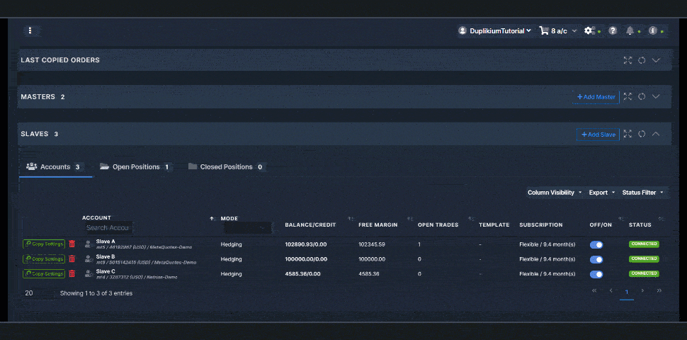 For paid accounts, we offer you a live monitoring service to check 24/7 if your Trade Copier is well connected to your broker.