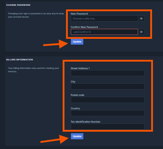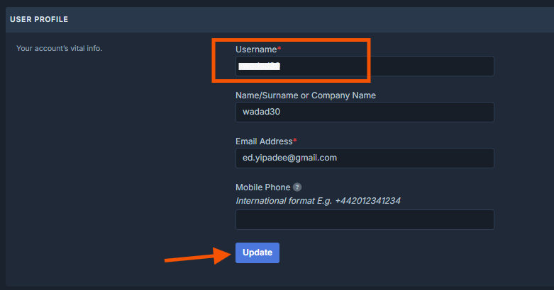 My Profile contains your cockpit credentials. To access, go to the top navigation bar and expand the dropdown beside your username and click on “My Profile”. Here you can: