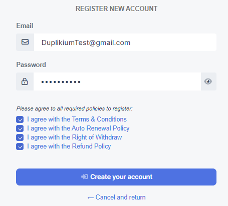 If you are stuck and unsure how to proceed, please send us an email at support@duplikium.com or through Live Chat with the following information below: