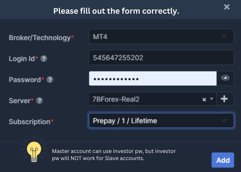 Upon adding your Master, you are now ready to set up your Signal Provider link. You can set it up yourself or reach out to us for assistance.