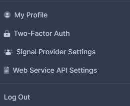 After purchase, click your USERNAME(top-right) and click Signal Provider Settings.