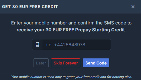To activate the Free Prepay Credit with your Free Trial plan, you must complete a quick mobile phone verification. This step is mandatory and ensures the credit is securely applied to your account.