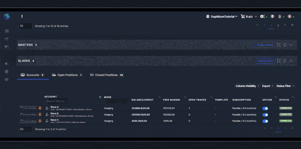 Click on the "Copy Settings" button beside the Master or Slave account of your choice.